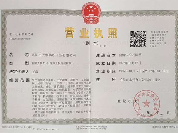 沁陽(yáng)市天潤(rùn)紡織工業(yè)有限公司是世界造紙行業(yè)所需工業(yè)用呢(俗稱(chēng):毛毯)***生產(chǎn)公司,地處我國(guó)懷慶八府之一河南省,沁陽(yáng)市。公司技術(shù)雄厚,生產(chǎn)設(shè)備先進(jìn),檢測(cè)設(shè)備齊全,于2003年通過(guò)ISO:2002國(guó)際質(zhì)量體系證,產(chǎn)品遠(yuǎn)銷(xiāo)中東,東南亞,非洲,南美洲及中國(guó)各地,年產(chǎn)量180噸左右。公司秉承“顧客為上,質(zhì)量上乘,不斷進(jìn)取“,的經(jīng)營(yíng)理念,堅(jiān)持“客戶(hù)為上,質(zhì)量為上,服務(wù)為上”的原則為廣大客戶(hù)提供優(yōu)良的產(chǎn)品和......